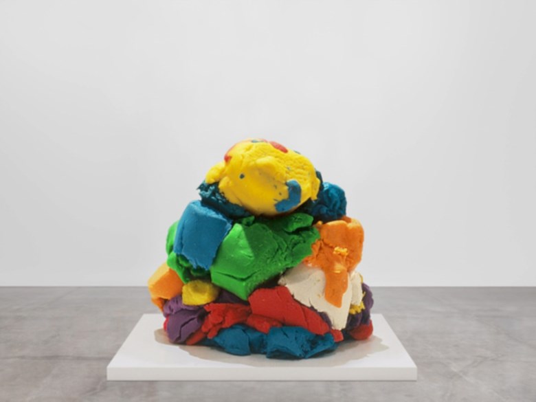 Há suficiente polémica e dinheiro e informação sobre Jeff Koons, o norte-americano nascido na Pensilvânia em 1955, para que não se estranhe a fila na entrada do museu quando falta pouco para as sete da tarde de uma sexta-feira de Julho. Com uma obra colada à sua biografia, nunca teve direito a uma retrospectiva na cidade onde vive e trabalha. Cartazes a anunciar a exposição estão espalhados por toda a cidade. A imagem de Michael Jackson em porcelana com o seu macaco de estimação, Bubbles (uma criação de Koons de 1988), segue colada em muitos autocarros que atravessam Manhattan. Nas estações de metro, vêem-se anúncios com Play-Do (1994-2014), talvez a peça mais emblemática da exposição e a grande novidade, uma escultura de 3,3 metros de altura que mimetiza uma montagem colorida feita de plasticina. Contam os organizadores que foi preciso retirar a porta de entrada do museu para fazer passar a estrutura montada como um puzzle que é o que não parece. Ferro em vez de massa de brincar que reflecte a obsessão de Koons com o detalhe, para que o engano sugerido seja sentido como verdadeiro. Levou-lhe 20 anos a concluir e está no centro da maior sala do quinto e último piso da exposição.