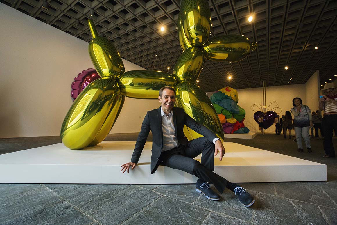 Pretende-se uma exposição histórica. O objectivo é que a retrospectiva de Jeff Koons no Whitney seja um espectáculo. O modo como foi concebida por Scott Rothkopf, um dos programadores do museu, reflecte essa preocupação. São 130 obras, a maioria emprestada por coleccionadores privados como Damien Hirst, o outro artista milionário que se diz discípulo de Koons. Estão distribuídas por cinco pisos, incluindo o lobby e o pátio do edifício, organizadas de forma cronológica desde 1978 até 2014, e que no seu conjunto pretendem ser um contributo para se escrever a história da arte nos últimos anos.